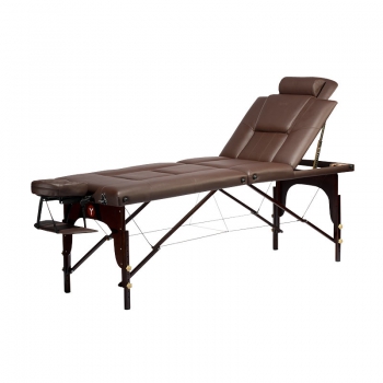 SAPPORO 1972 – элегантный массажный стол с дополнительным подголовником. Благодаря каркасу и ножкам, изготовленным из бука, он обладает удивительной прочностью и особой эстетикой, удачно подчеркнутой насыщенным шоколадным цветом.