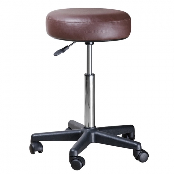 Мягкий и комфортный стул для массажиста, обтянутый качественным заменителем кожи. У него классическая круглая форма и, как полагается хорошей медицинской мебели, отличная эргономичность, длительный срок эксплуатации и большая устойчивость.